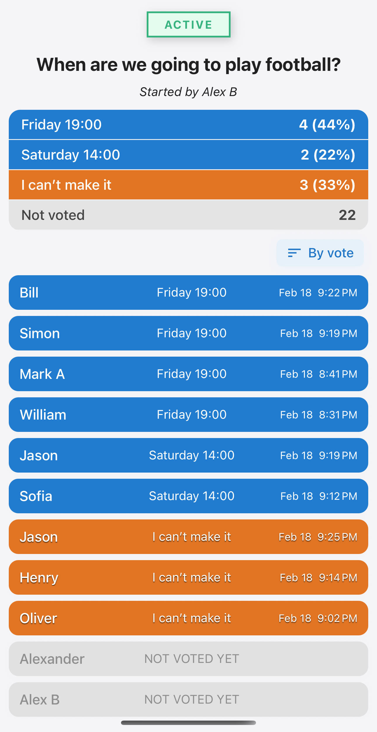 Start creating action-ready polls today. Built for teams, games, events, and activities.